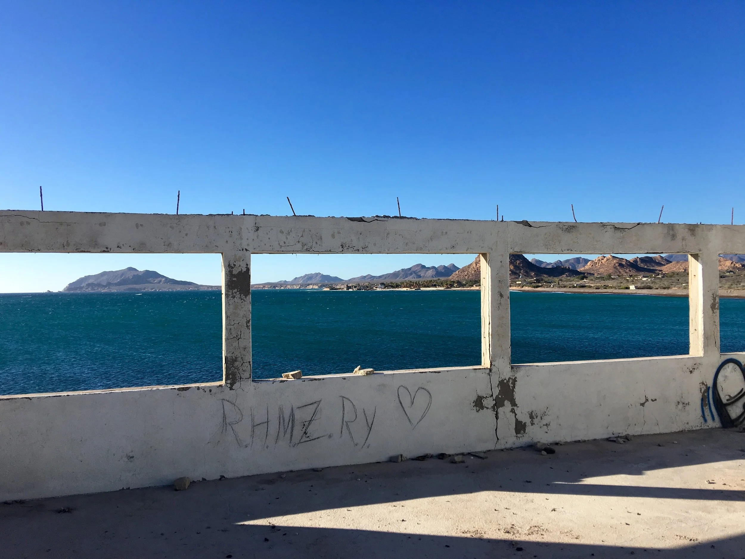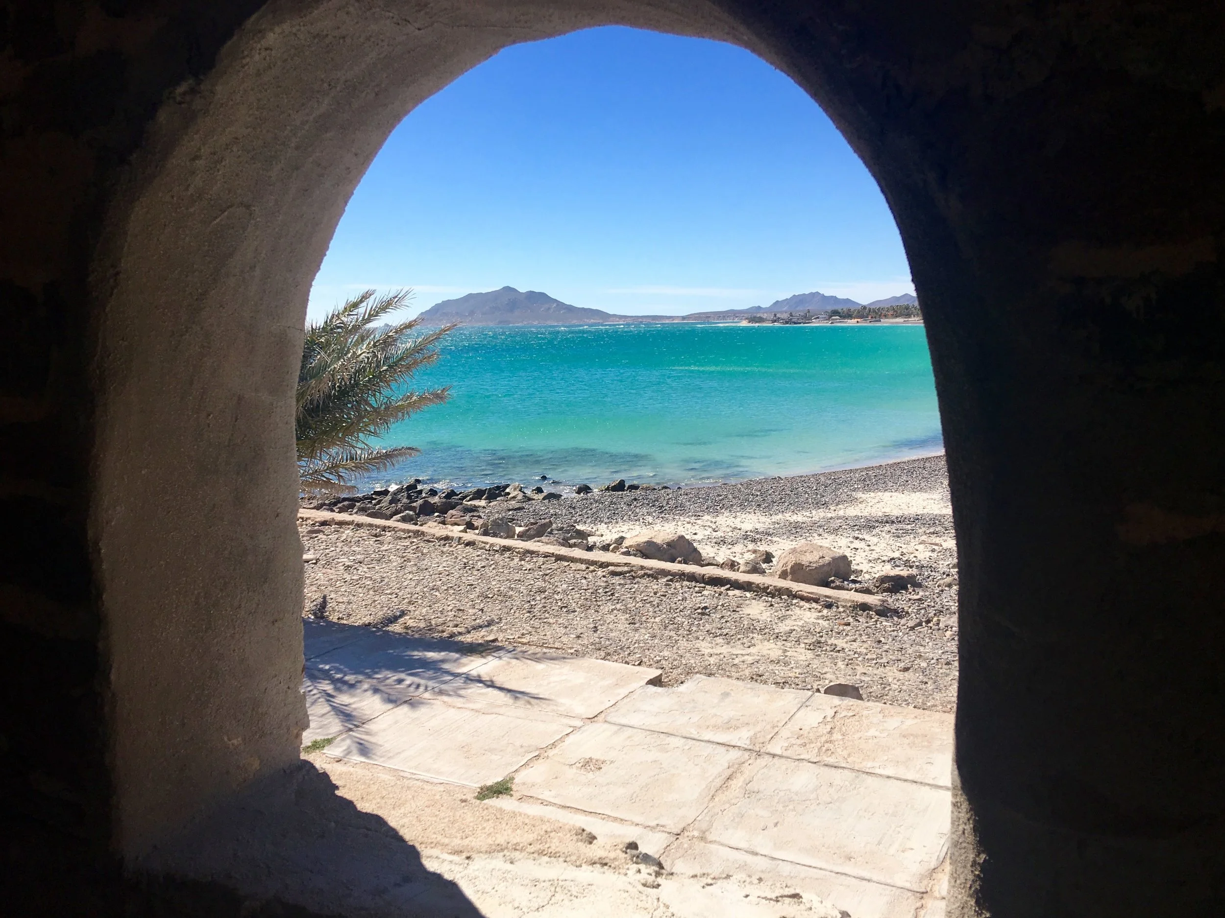 There was energy in the water so we made good time to Cabo Pulmo where we knew we would get some protection from the wind. On the way I was entertained by 3 baby turtles making their way north. They were followed by a rather large shark. Here is to hoping they made it. By 8 o'clock the wind and waves had picked up enough that we knew that this was going to be a short paddle day. We were glad to get around the point leading us to the small town of Cabo Pulmo. Cabo Pulmo is a national Parque for snorkeling. Fishing is not allowed and the marine species are on the rise. We had planned to dive here but not in this wind. Looks like we will be doing land based activities.