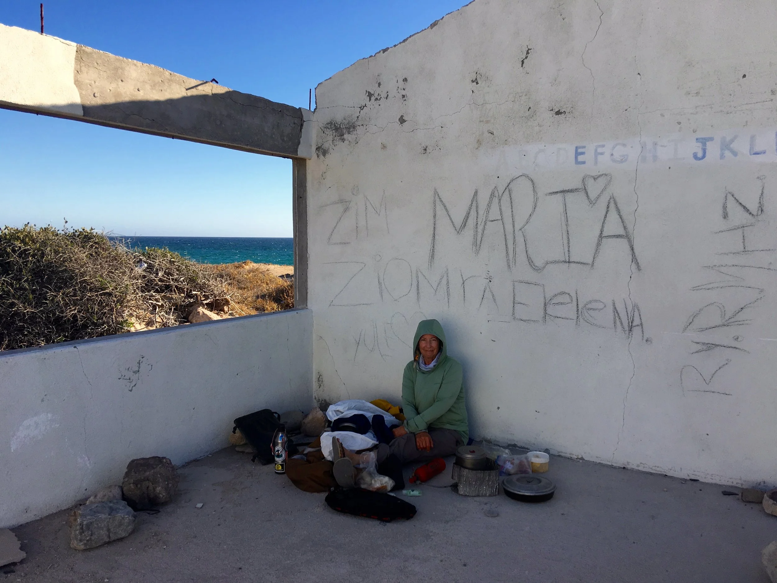 We had hoped to leave the morning of the 9th, but hearing the waves pound the shore and the wind shake our tent, it was obvious that we had another day of being here. Not a bad place as there was s mall town nearby that we could buy some fresh produce and even buy a pizza for an evening meal. Numerous mountain biking trails also surrounded the area so we were able to get some leg work in. For several hours of the last day, I occupied the nearby abandoned building for a change of location and to bake bread. It was quite scenic.