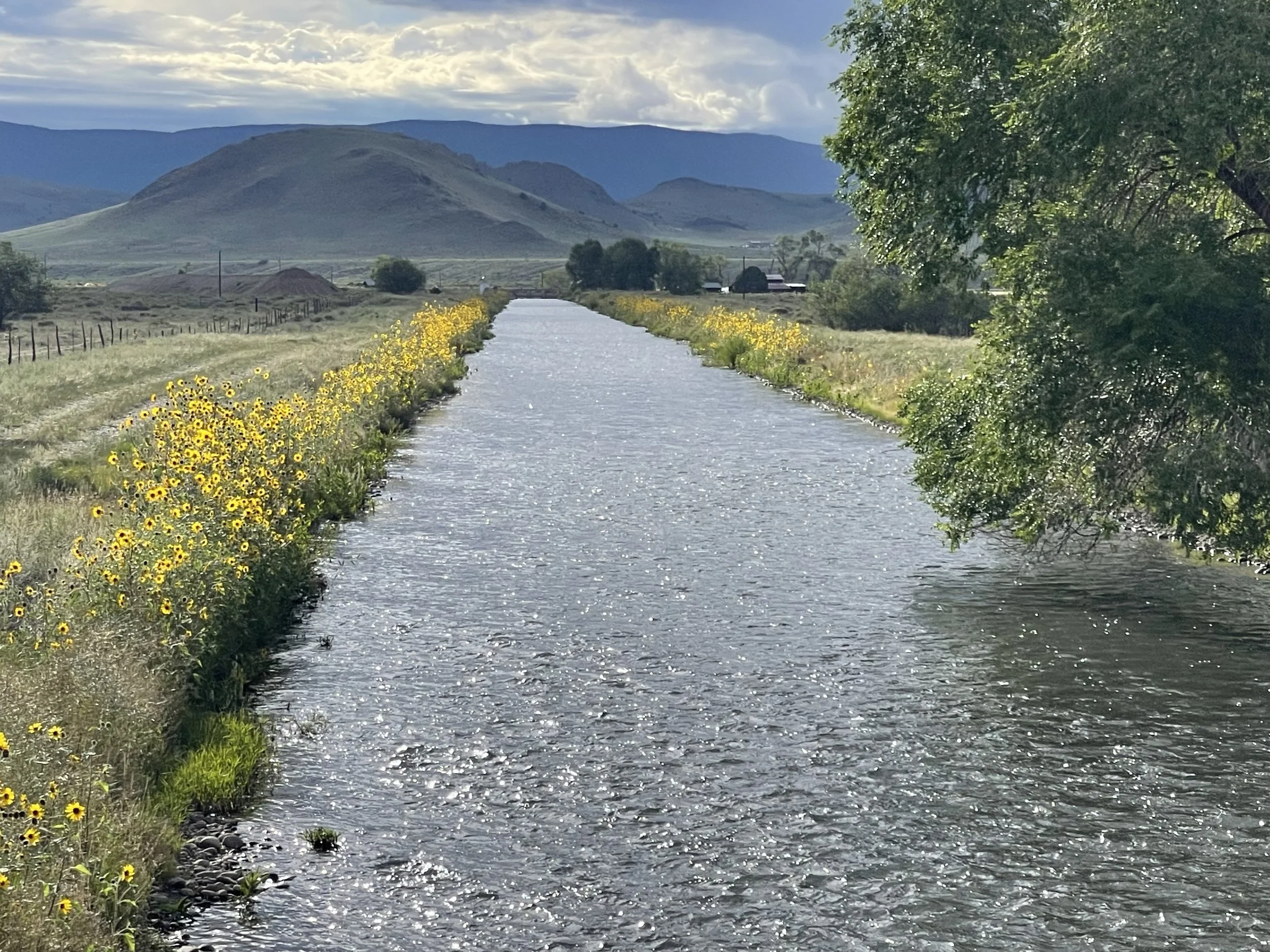 There is a small town called Las Garita that if opened has a really good cafe. This town has a historic church which we could see from the turn to go into the town. We decided since the cafe was closed we would head on to the town of Del Norte. It was mostly flat to the town, however it had lots of very bad washboard. We weaved our bikes from one side to the other trying to find the best line. Then came the pavement and a water way lined with sunflowers. This is the summer of sunflowers they are everywhere.