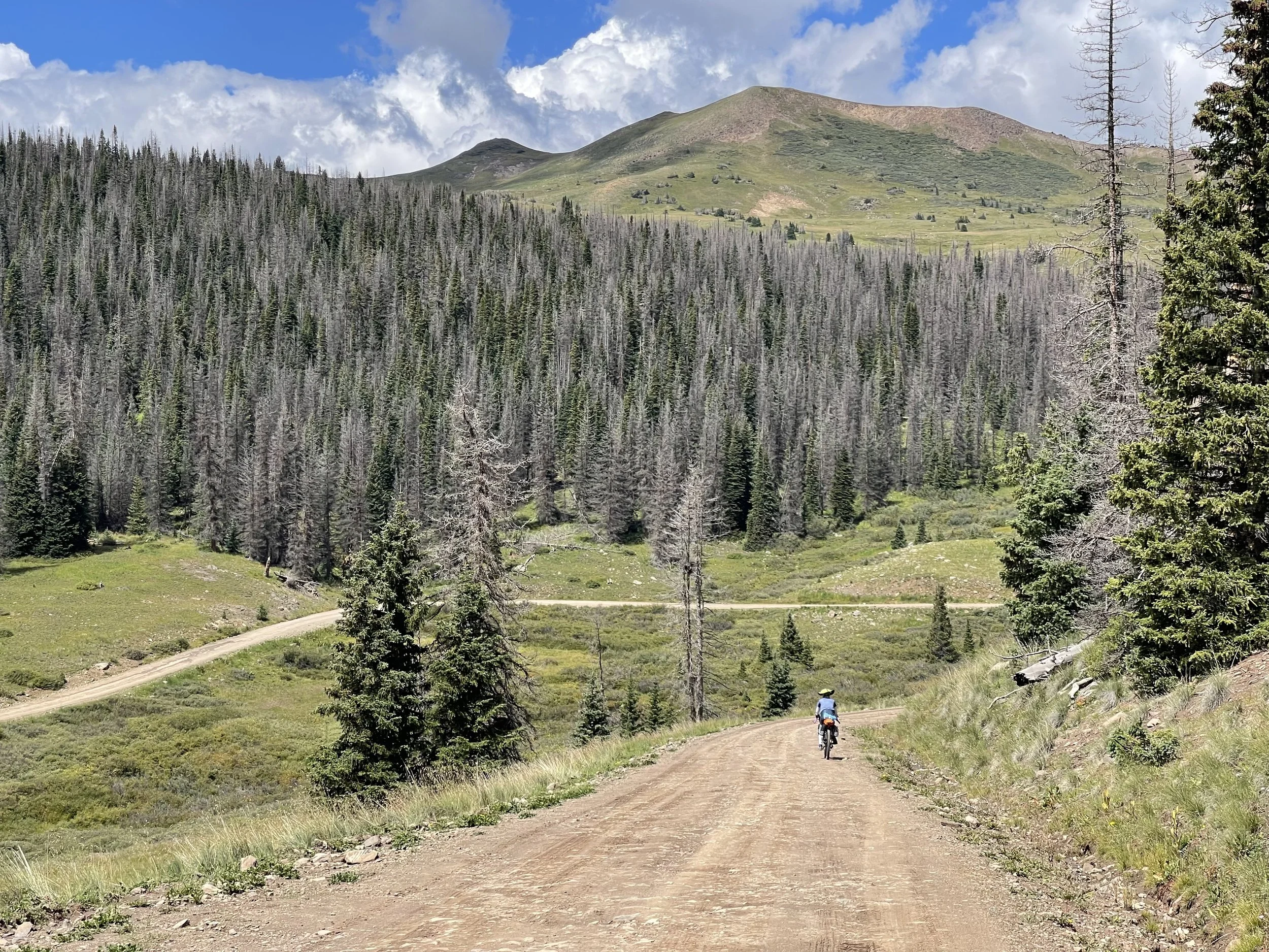 The rain fell through out the night so when morning finally came we were ready to head out. We made the decision to head up the main route to Marshall Pass. The other option was shorter, rockier and steeper and after all the rain, most likely quite muddy. We had a 10 mile bike ride to get to the top of the pass. Fortunately it was railroad grade which meant a 3 to 4 percent grade.